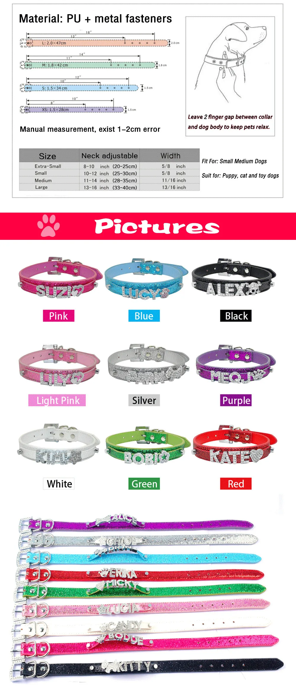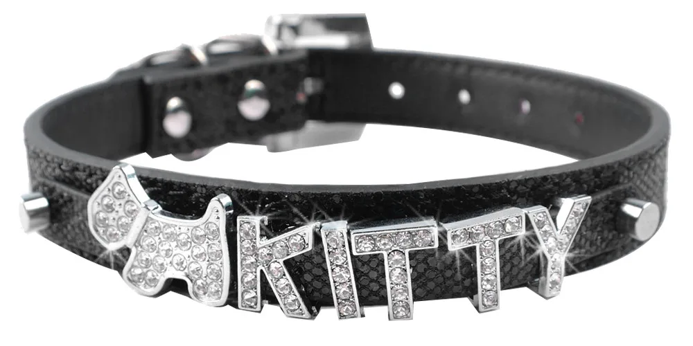 Package:1 pcs Pet Collar and FREE 10mm Rhinestone Letters up to 5 Letters + 2 Charms or 6 Letters + 1 charm