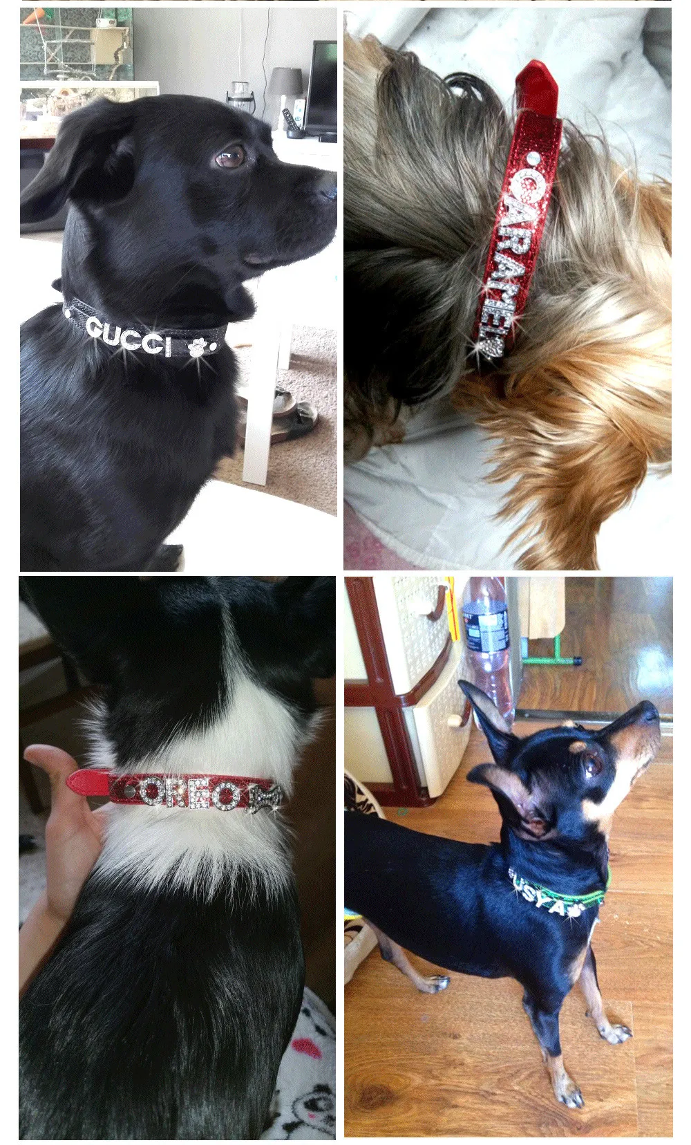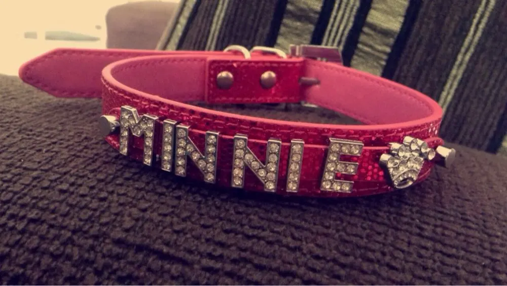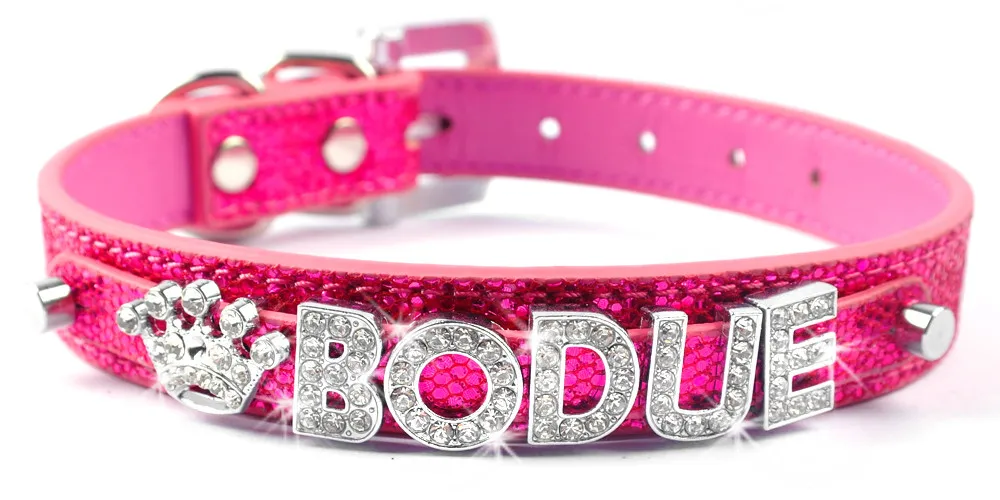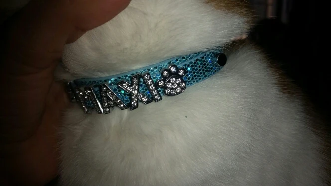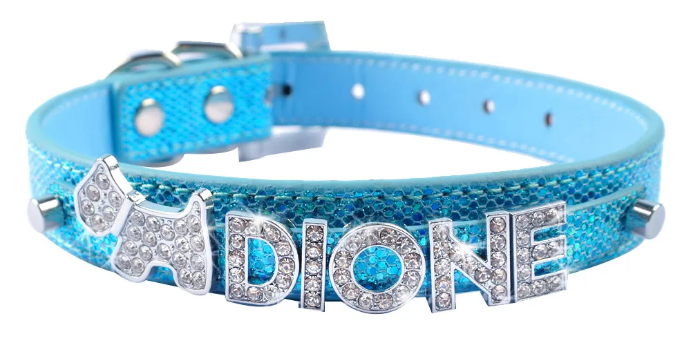 Package:1 pcs Pet Collar and FREE 10mm Rhinestone Letters up to 5 Letters + 2 Charms or 6 Letters + 1 charm